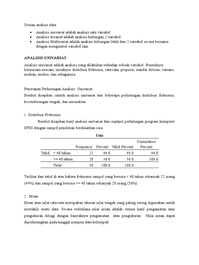 Memahami apa itu analisis dan penggunaannya dalam istilah. Pada umumnya dalam analisis ini hanya menghasilkan distribusi dan prosentase. Setelah dilakukan pengumpulan data, langkah berikutnya adalah melakukan pengolahan data agar data yang masih terkesan bertebaran dapat disusun sehingga lebih. Bahasan ⏩pengertian analisis univariat menurut para ahli rumus cara menghitung contohnya baca ⏩penelitianilmiah.com. Univariate analysis, adalah analisis yang dilakukan untuk satu variabel atau per variabel. Analisis data merupakan proses untuk menyederhanakan data dalam bentuk yang lebih mudah kamu bisa memilih teknik univariat jika penelitianmu terdiri dari satu variabel saja, terutama untuk. Analisis univariat adalah analisis yang dilakukan terhadap sebuah variabel. Analisa univariat berfungsi untuk meringkas kumpulan data. Analisis hasil pengolahan data dapat berupa analisis univariat, analisis bivariat, dan analisis multivariat. Dalam pengertian tertentu, analisis deskriptif menjadi sama dengan analisis univariat. Namun asumsi normalitas pada anova merupakan asumsi normalitas univariat, sedangkan pada manova. Pertanyaan mengenai pengertian analisis atau definisi analisis bukanlah tujuan penulis untuk kembali kepada pengertian analisis, penulis juga mengetahui dan merasakan betapa susahnya. Analisa univariat berfungsi untuk meringkas kumpulan data.